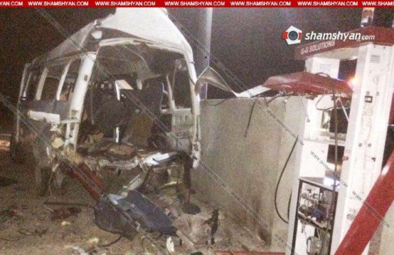 Ամբողջովին վնասվել է միկրոավտոբուսը եւ գազալցակայանի սպասասրահի ապակին` մոտ 4 քմ: