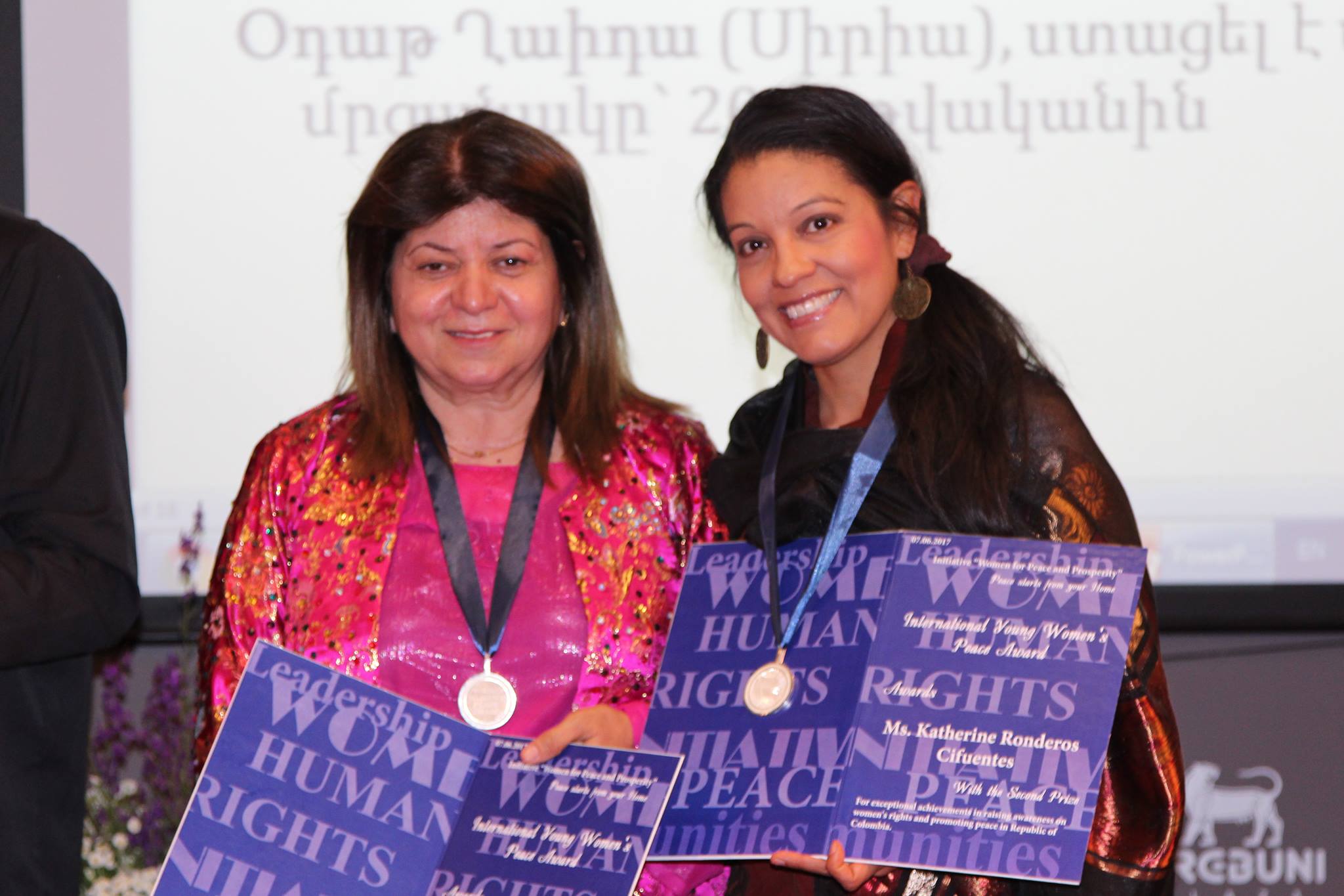 Հաղթողներին մրցանակները հանձնեցին «Երիտասարդ կանանց խաղաղության և մարդու իրավունքների միջազգային մրցանակ»-ի նախորդ տարվա մրցանակակիրները` «Սիրիայի կանանց ասոցիացիա»-ի ներկայացուցիչ Ղաիդա Օդաթը (Սիրիա) և էլիկո Բենդելիանին (Վրաստան):