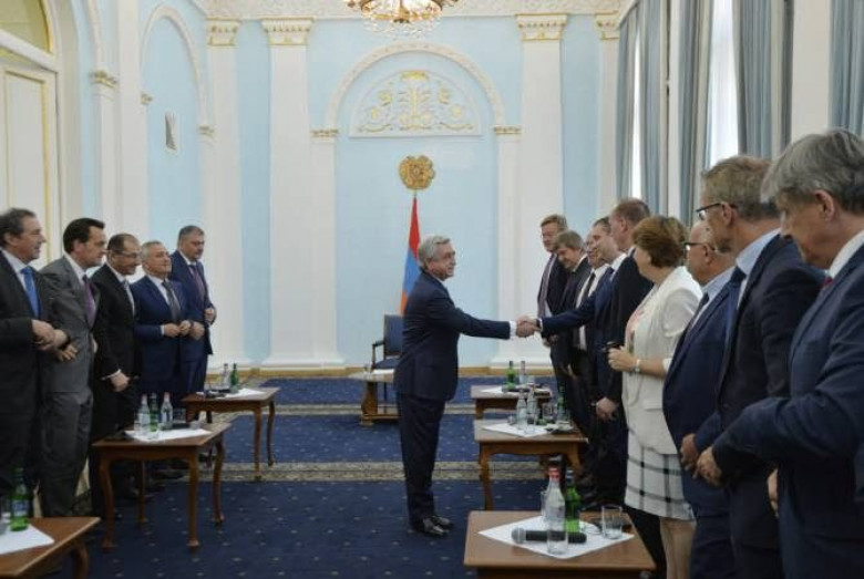 Ինչպես տեղեկացրին ՀՀ նախագահի աշխատակազմի հասարակայնության եւ տեղեկատվության միջոցների հետ կապերի վարչությունից, ողջունելով հյուրերին՝ Նախագահը նշել է, որ այսպիսի տարեկան հանդիպումները լավ հնարավորություն են ոլորտի պատասխանատուների և գործընկերների հետ մտքեր փոխանակելու ենթախմբի երկրների հետ փոխգործակցության ընթացքի և զարգացման հեռանկարի, ինչպես նաև համաշխարհային տնտեսության առջև ծառացած խնդիրների ու մարտահրավերների, դրանց հաղթահարման հնարավոր ուղիների շուրջ: Սերժ Սարգսյանը բարձր է գնահատել Արժույթի միջազգային հիմնադրամի և Համաշխարհային բանկի հետ Հայաստանի համագործակցությունը և կարևորել միջազգային ֆինանսական այդ կազմակերպություններին Հայաստանի անդամակցությունից ի վեր անցած 25 տարիների ընթացքում համատեղ իրականացված ծրագրերը, որոնց շնորհիվ Հայաստանը կարողացել է երկրում ապահովել մակրոտնտեսական և ֆինանսական կայունություն՝ վարելով համակարգված հարկաբյուջետային ու դրամավարկային քաղաքականություն, ինչպես նաև իրագործել բարեփոխումներ ամենատարբեր ոլորտներում և դրա հաշվին բարձրացնել Հայաստանի տնտեսության արդյունավետությունը: