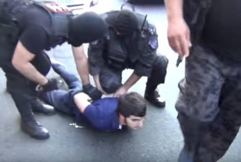 Տեսանյութում երևում է՝ ինչպես են իրավապահները մեքենաներից հանում ուղևորներին, նրանց դեմքով դեպի գետին պառկեցնելով, բռնում թևերից ու բերման ենթարկում: