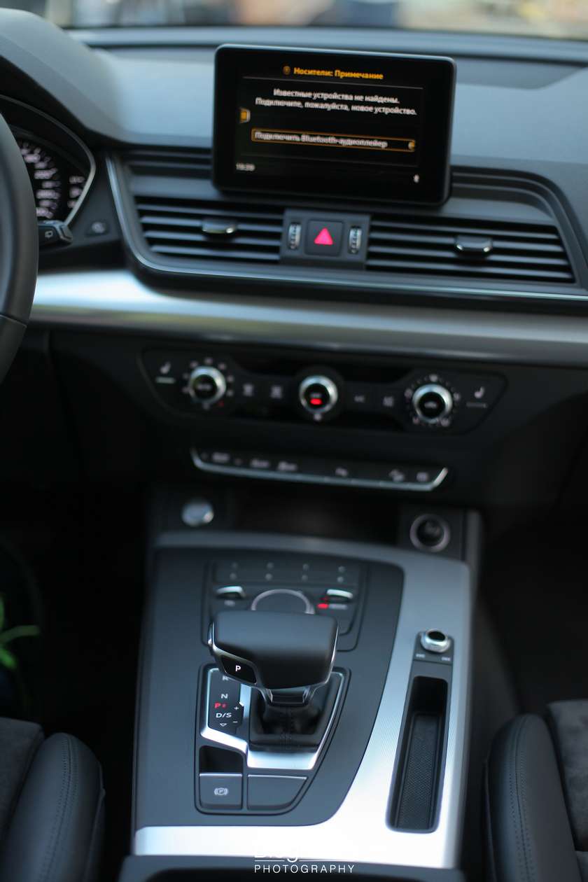 Մեկ այլ՝ 8.3 դյույմանոց էկրան էլ տեղադրված է տորպեդոյի կենտրոնական մասում՝ օժանդակ սարքավորումների և համակարգերի ղեկավարման համար: Սալոնի լուսավորման համար նախատեսված են ամենատարբեր գունային ձևավորումներ: Մեքենայի խելացի նավիգացիոն համակարգը հիշում է վարորդի սովորությունները և ճանապարհը գծելիս հաշվի առնում դրանք, առաջարկում այլընտրանքային ուղիներ՝ խցանումները հաշվի առնելով։ Audi Q5-ը առատորեն սարքավորված է օժանդակ համակարգերով՝ ադապտիվ կրուիզ-կոնտրոլ, ցածր արագությունների ինքնակառավարման, հետիոտնի ճանաչման և ավտոմատ արգելակման, կայանման համակարգերով: