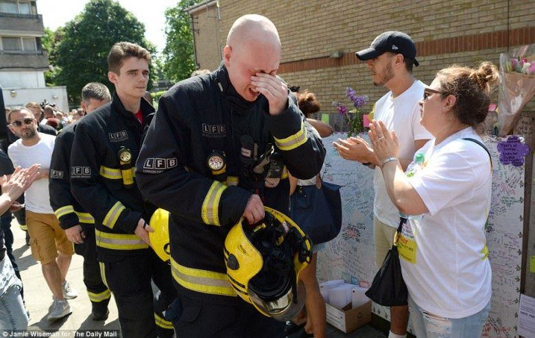 Հրշեջները, ովքեր մարում էին Լոնդոնի Grenfell Tower բարձրահարկ շենքում բռնկված այդ խոշոր հրդեհը, 1 րոպե լռությամբ հարգել են տասնյակ զոհերի հիշատակը՝ չկարողանալով զսպել իրենց արցունքները: