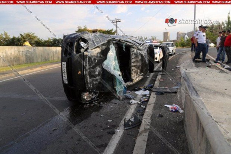 Խոշոր վթար Երեւանում. Porsche Cayenne-ը բախվել է արգելապատնեշին ու շրջվել.կա 4 վիրավոր (ֆոտո)