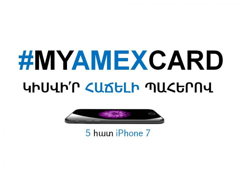 Որքան շատ նման հրապարակումներ իրականացնեք, այդքան մեծ կլինի շահելու հավանականությունը: Չորս iPhone 7 բջջային հեռախոսները կխաղարկվեն #myamexcard գլխագրով հրապարակումներ կատարած Քարտատերերի միջև, իսկ ևս 1-ը կխաղարկվի #myamexcard գլխագրով հրապարակումները տարածած /share/ օգտատերերի միջև: Խրախուսե՛ք Ձեր ընկերներին տարածել Ձեր հրապարակումները, և նրանք նույնպես կդառնան մրցույթի մասնակից: