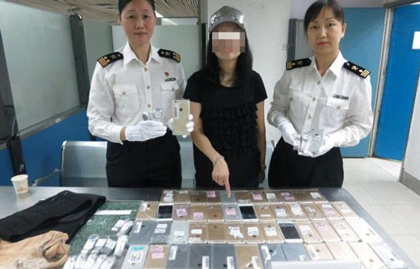 Չինաստանի Շենչժեն քաղաքի մաքսատան աշխատակիցներին տարօրինակ թվաց նիհար, բայց անսովոր քայլվածքով մի աղջիկ և որոշեցին նրան ստուգել սկաների օգնությամբ: Ընդհանուր առմամբ 20 կիլոգրամ ընդհանուր քաշով 102 հատ iPhone ու 15 Tissot ֆիրմային ժամացույց հայտնաբերեցին նրա մոտ: Հոնգ Կոնգից մաքսանենգ ճանապարհով բերված սմարթֆոնները մեծ պահանջարկ են վայելում Չինաստանում և մարդիկ հնարավոր բոլոր միջոցներով փորձում են դրանք տեղափոխել Չինաստան: