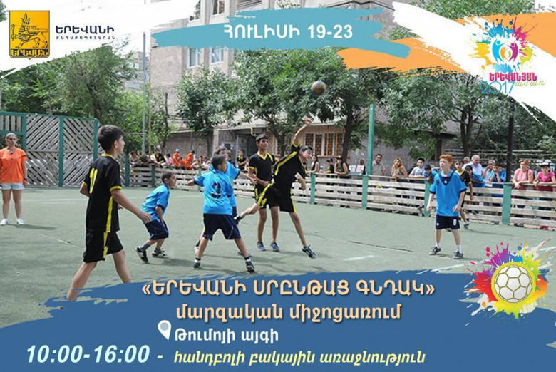 hուլիսի 19-23-ը` ժամը 10:00-16:00-ն, Թումոյի այգում կանցկացվի «Երևանի Սրընթաց գնդակ» հանդբոլի բակային առաջնությունը: