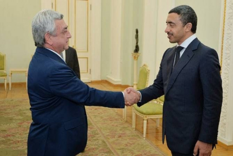 Նշելով, որ Հայաստանը թանկ է գնահատում երկու բարեկամ պետությունների միջև դեռևս Էմիրաթների լուսահոգի նախագահ Զայեդ բին Սուլթան Ալ Նահյանի կենդանության օրոք ձևավորված փոխգործակցությունը, Հանրապետության Նախագահը գոհունակությամբ է արձանագրել, որ երկկողմ միջպետական հարաբերությունները օր օրի զարգանում և ամրապնդվում են: Սերժ Սարգսյանը ջերմությամբ է հիշել ընթացիկ տարվա գարնանը իր այցը Արաբական Միացյալ Էմիրություններ, որը որակական նոր լիցք հաղորդեց երկկողմ հարաբերություններին։ Նախագահը հույս է հայտնել, որ նախարար Աբդալլահ բին Զայեդ Ալ Նահյանի այցը Հայաստան հայ-էմիրաթական համագործակցության օրակարգը կհարստացնի նոր բովանդակությամբ:
