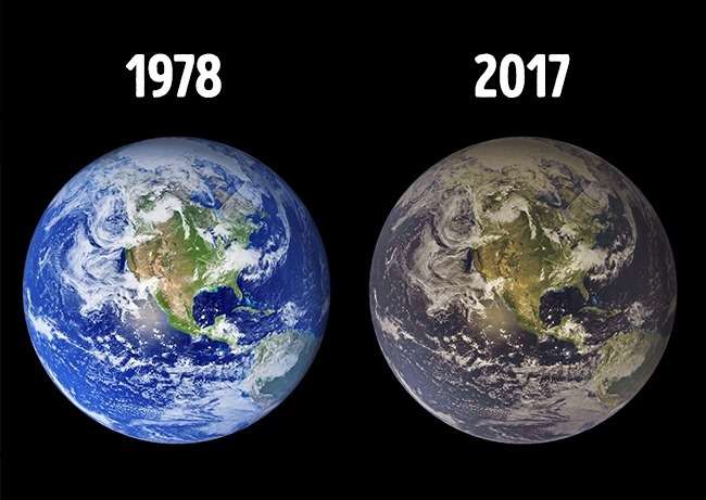 Սա այդքան էլ մեծ նորություն չէ մարդկանց համար։ Սակայն տիեզերագնացները պնդում են, որ ընդամենը մի քանի տասնամյակ առաջ Երկրի տեսքը շատ տարբերվում էր նրանից, ինչ որ տեսնում են հիմա։ Աղտոտման պատճառով մեր կանաչ, կապույտ ու սպիտակ մոլորակը վերածվում է շագանակագույն, մոխրագույն և սև մոլորակի։