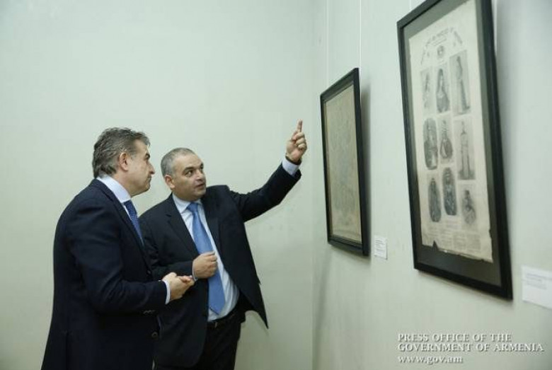 Շրջայցի ընթացքում վարչապետը ծանոթացել է «Հայոց թագավորներն ու թագուհիները XVII-XIX դդ. եվրոպական փորագրանկարներում և հայկական պաստառներում» խորագրով ցուցահանդեսի աշխատանքներին, որոնց մեջ կան հազվագյուտ և մինչ օրս անհայտ նմուշներ: Ցուցադրության մեջ ներառված են նյութեր Հայոց ցեղասպանության թանգարան-ինստիտուտի տնօրեն Հայկ Դեմոյանի, Բոստոնի Ամերիկայի հայկական թանգարանի, Արարատ-Էսքիճեան թանգարանի և Հայաստանի պատմության թանգարանի հավաքածուներից: