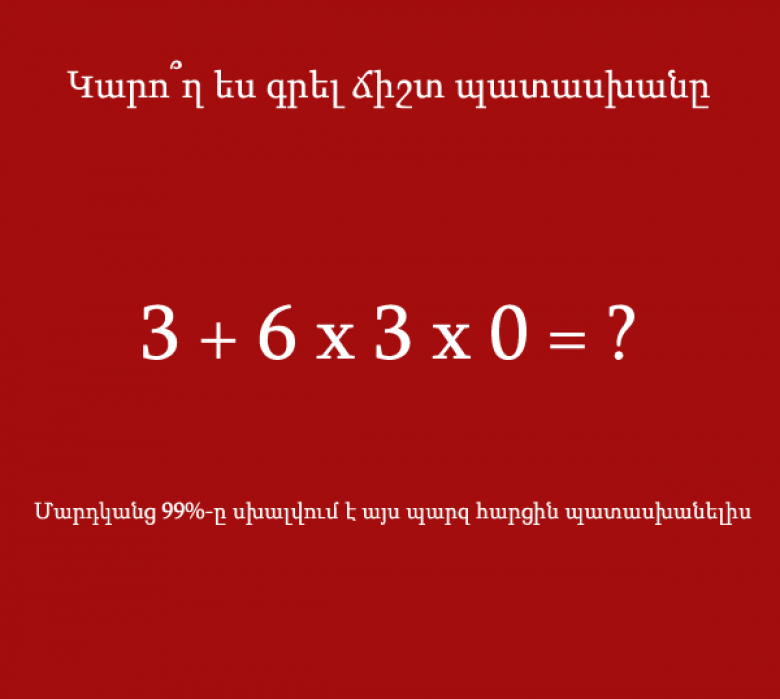 Պարզ մաթեմատիկական խնդիր, որ շատերը դժվարանում են լուծել մարդկանց մեծ մասը
