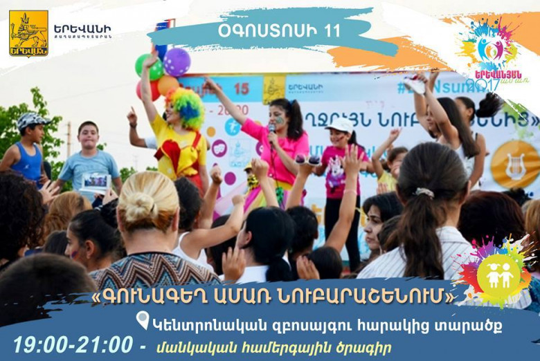 օգոստոսի 11-ին, ժամը 19:00-21:00-ն Նուբարաշեն վարչական շրջանի Կենտրոնական զբոսայգու հարակից տարածքում կանցկացվի «Գունագեղ ամառ Նուբարաշենում» մանկական համերգային ծրագիրը: