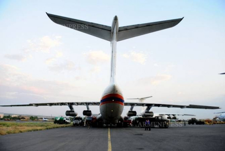 ՌԴ ԱԻՆ «ԻԼ-76» ինքնաթիռը 3-րդ թռիչքն իրականացնելու համար ջրատարների օգնությամբ լիցքավորվել է Երևանի «Էրեբունի» օդանավակայանում: