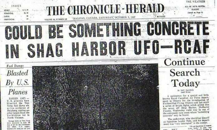 2. 1967 թ. հոկտեմբերի՝ կեսգիշերին մոտ, Նոր Շոտլանդիայի (Կանադա) Շագ նավահանգստում նկատել են հսկայական թռչող օբյեկտ: Որոշ ժամանակ շարժվելուց հետո այն սուլոցի նման ձայնով սուզվել է ջրի մեջ: Օբյեկտը չի հայտնաբերվել, սակայն տեղի երկու բնակիչներ հետագայում հիշատակել են ջրում լողացող ինչ-որ օբյեկտի մասին, որն իրենց աչքերով են տեսել: Որոշ ժամանակ տեղի փրկարարները ուսումնասիրել են նավահանգստի ջրային տարածքը, սակայն այդպես էլ ոչինչ չեն հայտնաբերել: