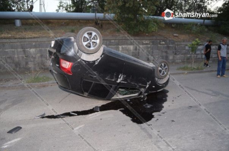 Երևանում տեղի ունեցած ավտովթարի ժամանակ մեքենաներից մեկը գլխիվայր շրջվել է