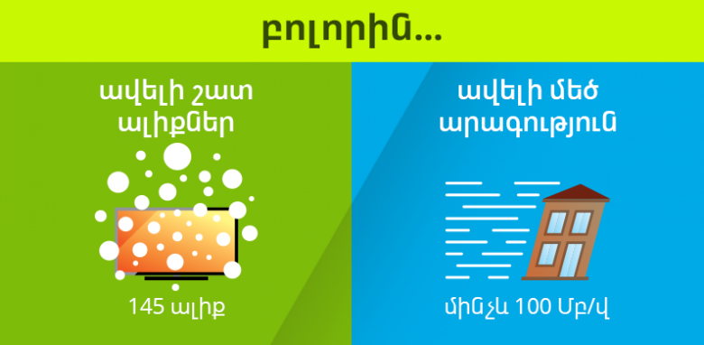Ucom-ի բոլոր բաժանորդները կվայելեն մինչև 100 Մբ/վ ինտերնետի արագություն և կդիտեն 145 հեռուստաալիքներ