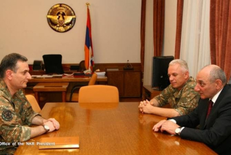 Ինչպես տեղեկացրին Արցախի Հանրապետության Նախագահի աշխատակազմի տեղեկատվության գլխավոր վարչությունից, հանդիպմանը, որին ներկա էր Արցախի Հանրապետության պաշտպանության նախարար Լեւոն Մնացականյանը, քննարկվել են բանակաշինությանը եւ այդ ոլորտում հայկական երկու պետությունների համագործակցությանը վերաբերող հարցեր: