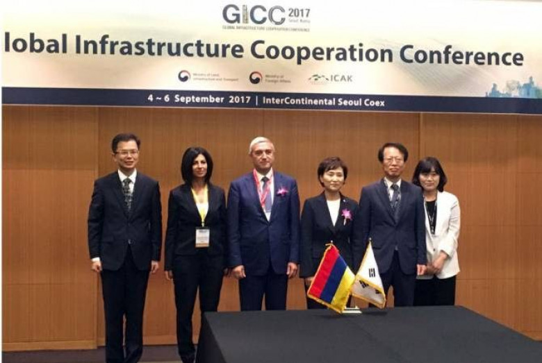 ՏնտեսությունՀարավային Կորեայում սեպտեմբերի 4-6-ն անցկացվող Գլոբալ ենթակառուցվածքների համագործակցության համաժողովի շրջանակներում ՀՀ տրանսպորտի, կապի և տեղեկատվական տեխնոլոգիաների նախարար Վահան Մարտիրոսյանը հանդիպել է Հարավային Կորեայի հողի, ենթակառուցվածքների և տրանսպորտի նախարար Քիմ Հյուն-Միին: