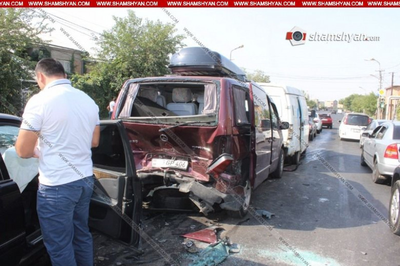 Խոշոր ու շղթայական ավտովթար Երևանում. բախվել են 2 Mercedes-ները, «Գազպրոմ Արմենիա» ընկերության Газель-ը, Opel-ն ու Toyota-ն. կան վիրավորներ (Ֆոտո)