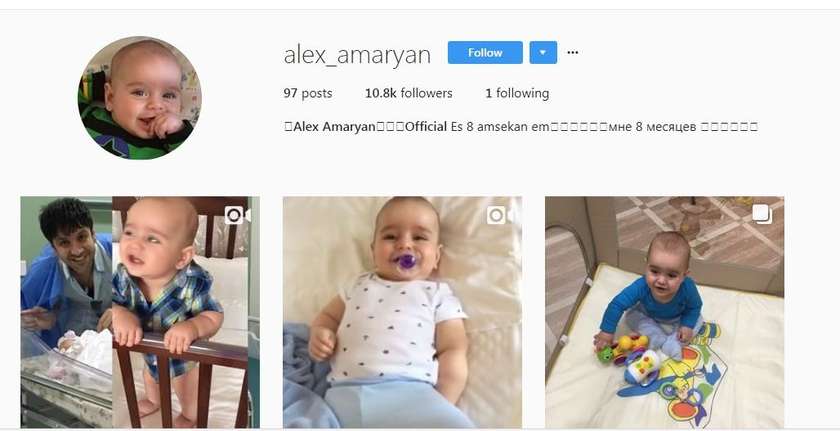 Երգիչ Վաչե Ամարյանի որդին, ով լույս աշխարհ էր եկել  ընդամենը  ամիսներ առաջ, արդեն Ինստագրամի էջ ունի, որտեղ հրապարակվում են փոքրիկի  լուսանկարներն ու  տեսանյութեր:  Թմբլիկ Ալեքսի լուսանկարները  զարդարում են  նաև նրա աստղային հայրիկի էջերը սոցիալական ցանցերում: Փոքրիկն ունի շուրջ 11 հազար հետևորդ: