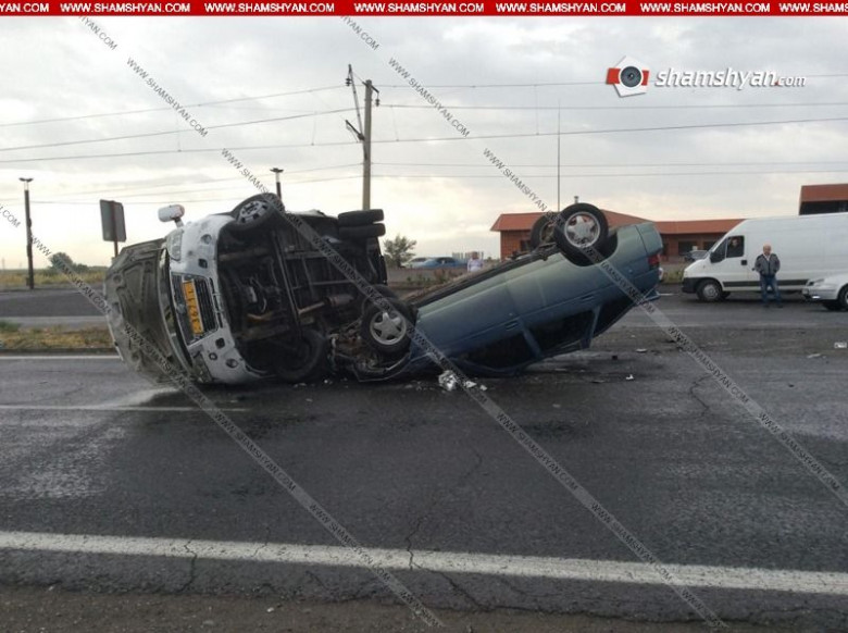 Խոշոր ավտովթար Երևան-Արմավիր ճանապարհին. բախվել են ЛАДА-ն ու մարդատար Газель-ը, ЛАДА-ն գլխիվայր շրջվել է, Газель-ը կողաշրջվել է