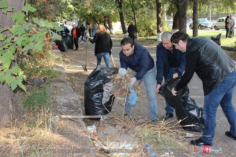 ՀասարակությունՀամապետական շաբաթօրյակի շրջանակում Երևանում կազմակերպված համաքաղաքային շաբաթօրյակի ընթացքում մայրաքաղաքի վարչական շրջաններում կատարվել են մեծածավալ սանմաքրման աշխատանքներ: Երևանի քաղաքապետարանի և վարչական շրջանների աշխատակազմերի, քաղաքապետարանի ենթակա կառույցների, պետական և մասնավոր կառույցների աշխատակիցների, Երևանի քաղաքապետին կից երիտասարդության հարցերի խորհրդի անդամների, ուսանողների և բնակիչների ջանքերով պատշաճ տեսքի են բերվել մայրաքաղաքի բակերը, այգիներն ու պուրակները, հասարակական կառույցները և հանրային օգտագործման այլ տարածքներ: