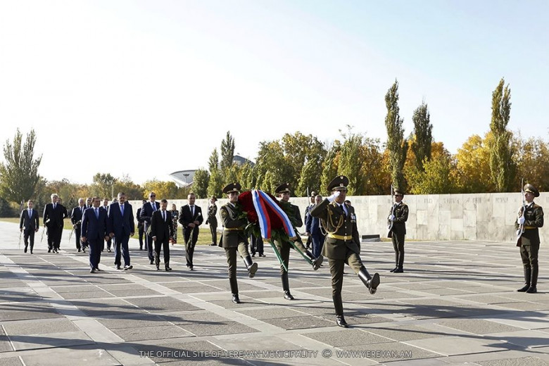 ՀասարակությունՊաշտոնական այցով Հայաստանի Հանրապետություն ժամանած Ռուսաստանի Դաշնության վարչապետ Դմիտրի Մեդվեդևը Երևանի քաղաքապետ Տարոն Մարգարյանի և ՀՀ փոխվարչապետ Վաչե Գաբրիելյանի ուղեկցությամբ այցելել է Ծիծեռնակաբերդի հուշահամալիր, ծաղկեպսակ դրել Հայոց մեծ եղեռնի զոհերի հուշարձանին և ծաղիկներ է խոնարհել Հայոց ցեղասպանության Սուրբ նահատակների հիշատակը հավերժացնող անմար կրակի մոտ: