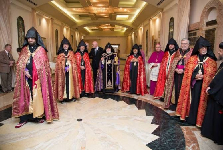 Հայրապետական պատվիրակությանը Միացյալ Նահանգներում միացել էին ԱՄՆ Հայոց Արևելյան թեմի առաջնորդ Գերաշնորհ Տ. Խաժակ արքեպիսկոպոս Պարսամյանը, Կանադայի Հայոց թեմի առաջնորդ Գերաշնորհ Տ. Աբգար եպիսկոպոս Հովակիմյանը, ԱՄՆ Հայոց Արևելյան թեմի էկումենիկ կապերի պատասխանատու և թեմական նվիրակ Գերաշնորհ Տ. Վիգեն արքեպիսկոպոս Այքազյանը: Հանդիպմանը ներկա էին նաև բարերարներ տեր և տիկին Վաչե և Թամար Մանուկյանները, ՀԲԸՄ նախագահ տիար Պերճ Սեդրակյանը և հավատացյալ այլ հայորդիներ: