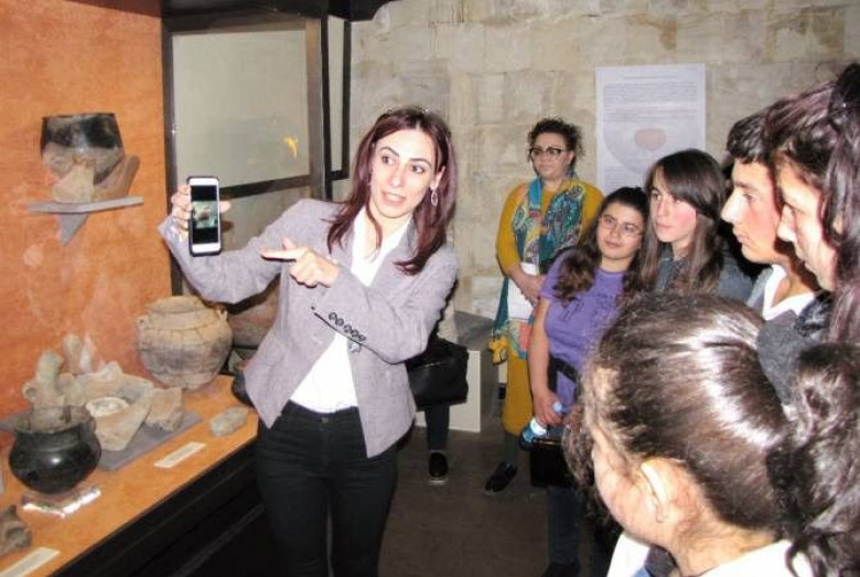 Այնուհետև, արդեն ցուցասրահներում, Արտավազդ Զաքյանն ու կրթական ծրագրերի պատասխանատու Թամարա Շահբազյանն առավել մատչելի պատանիներին ներկայացրել են ցուցադրությունը, որում ընդգրկված են Մեծամորի հնավայրում 1960-ականներից մինչեւ 2014 թվականը իրականացված պեղումների արդյունքում հայտնաբերված գտածոները: Պատանիները հնարավորություն են ունեցել ձեռքերում պահել որոշ ցուցանմուշներ, առավել մանրամասն տեղեկություն ստանալ դրանց կիրառության մասին։