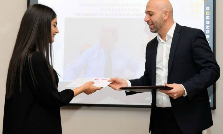 Ռեկտոր Գալստյանը, դեսպան Պետրիկասը և Հայկ Ալոյանը ստորագրեցին հավաստագիր և Շողեր Խաչատրյանին հանձնեցին մրցանակը՝ 1500 եվրո, որով կվճարեն հաղթող ուսանողի մագիստրատուրայի վերջին կուրսի վարձավճարը: