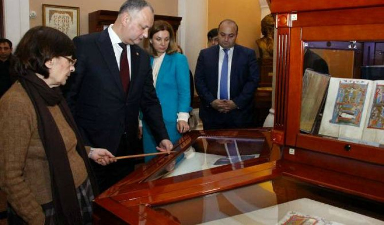 ՀասարակությունՊաշտոնական այցով նոյեմբերի 9-ին Հայաստան ժամանած Մոլդովայի նախագահ Իգոր Դոդոնը կնոջ՝ Գալինա Դոդոնի հետ միասին այցելեց Մեսրոպ Մաշտոցի անվան հին ձեռագրերի գիտահետազոտական ինստիտուտ` Մատենադարան: Նրանց ուղեկցում էր Մատենադարանի տնօրենի ժամանակավոր պաշտոնակատար Վահան Տեր-Ղեւոնդյանը: Նա տեղեկացրեց, որ բարձրաստիճան հյուրերին ներկայացվել է հիմնական ցուցասրահը, որը ներառում է մշտական ցուցադրության հին ձեռագրերը, ավետարաններ, հայ պատմիչների գործերը, վավերագրերը եւ այլն: