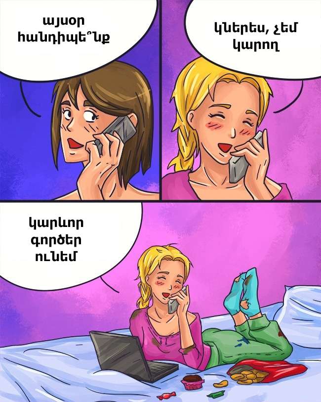 BlogNews –ը Ձեզ է ներկայացնում 9 զվարճալի նկարազարդումներ, որոնք կհասկանան բոլոր ալարկոտ աղջիկները։