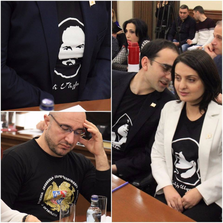 ՀասարակությունՄեկնարկել է Երևանի ավագանու նիստը, նիստին իհարկե բոլորն աչքի կփորձեն ընկնել: Ելքն այս անգամ Երկիր Ծիրանի խմբակցությունից փորձեց հետ չմնալ, Եվ եթե նախորդ նիստին ԵԾ անդամները ներկայացել էին ավազե ժամացույցով ու դրոշակներով, ապա այս անգամ Ելք խմբակցության անդամները ներկայացել են հերոսների նկարները ներկայացնող շապիկներով:
