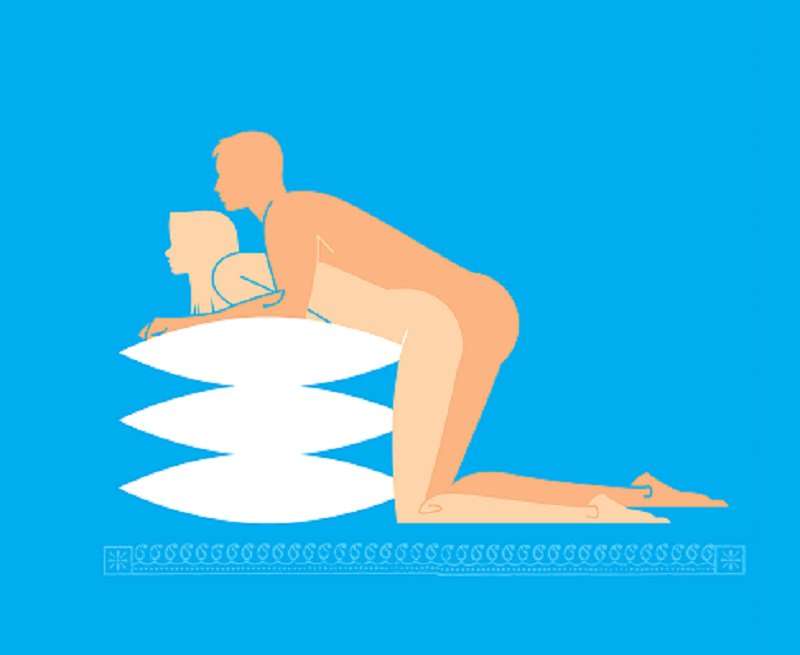 Կինը պետք է ծնկի իջնի, ձեռքերով հենվի մի քանի բարձի, հետույքը հետ պահի: Տղամարդն էլ պետք է ծնկի գա: