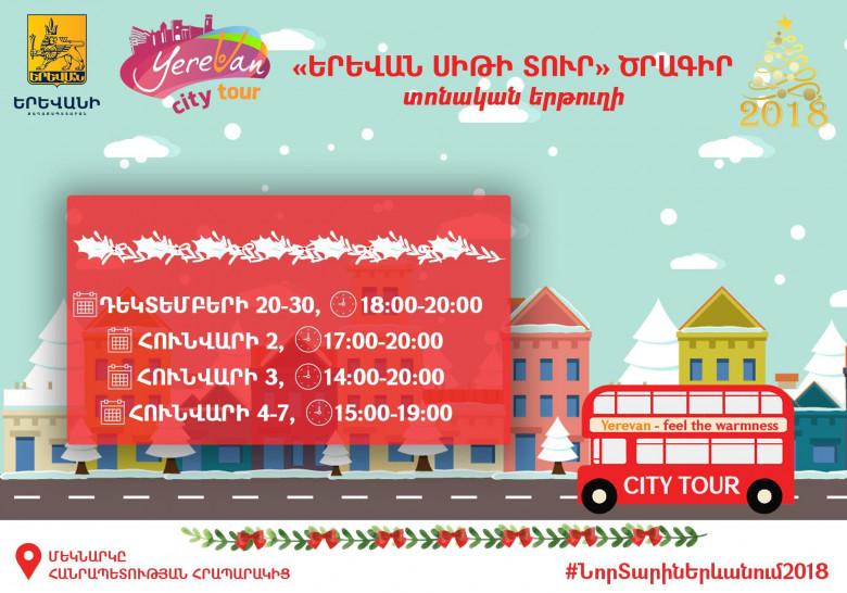 #ՆորՏարինԵրևանում2018-ի շրջանակում տոնական երթուղով դեկտեմբերի 20-ից կաշխատի Yerevan City Tour ծրագիրը: