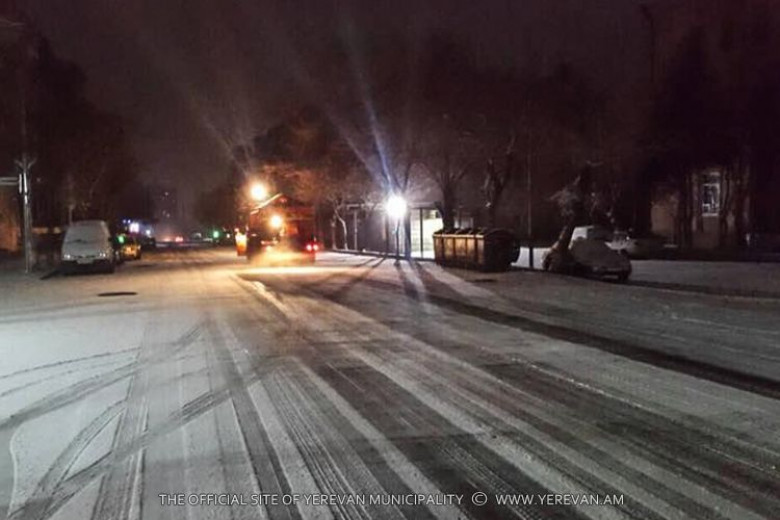 «Սանիթեք» ընկերության, վարչական շրջանների համապատասխան տեխնիկայի, ինչպես նաև մարդկանց ներգրավմամբ իրականացվել է գլխավոր ու երկրորդական փողոցների, մայթերի և բակերի ձնամաքրման աշխատանքներ, որի ընթացքում օգտագործվել է տեխնիկական աղ և շլաքային ավազ: Առավոտյան տվյալներով ձնամաքրման նպատակով գործարկվել է 151 միավոր տեխնիկա, այդ թվում՝ 24 տրակտոր, 27 աղցան և ձնամաքրող 80 փոքր մեքենասարքավորում: Ձնամաքրման աշխատանքներին առավոտյան միացել են նաև համատիրությունները: Աշխատանքների ողջ ընթացքը համակարգվել ու համակարգվում է Երևանի քաղաքապետարանի կոմունալ տնտեսության վարչության և հատուկ օպերատիվ շտաբի, իսկ տեղերում` վարչական շրջանների ղեկավարների կողմից: