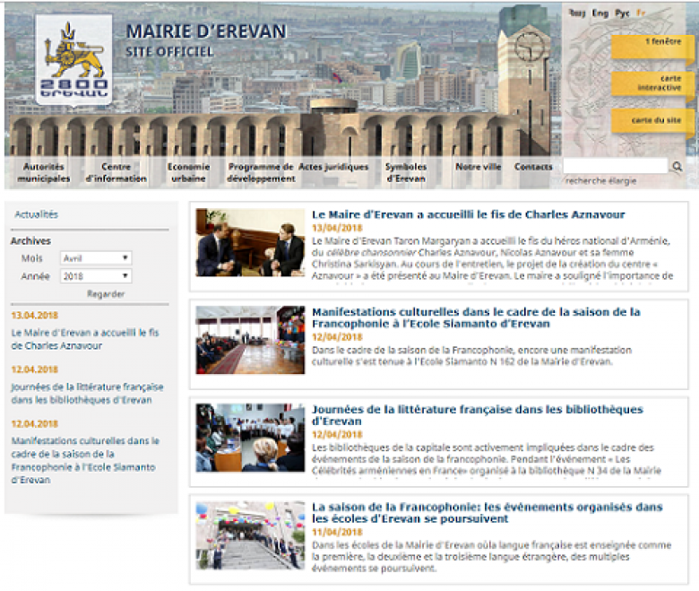 Երևանի քաղաքապետարանի պաշտոնական կայքն այսուհետ հասանելի է նաև ֆրանսերենով