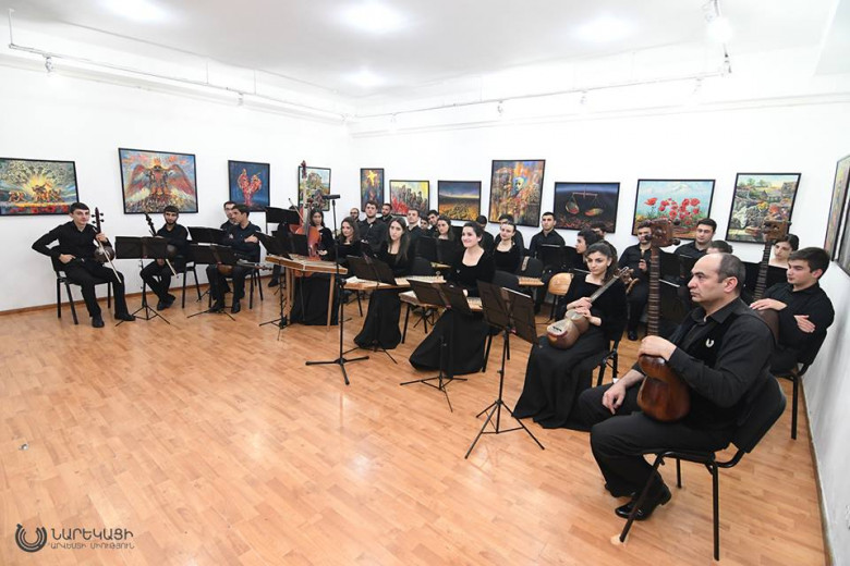 «Նարեկացի» ժողովրդական նվագարանների նվագախումբը հանդես եկավ Հայոց ցեղասպանության զոհերի հիշատակին նվիրված «Նորից ապրիլ է …» երգի պրեմիերայով ( երաժշտ.՝ Արտեմ Խաչատուրի, խոսք՝ Ս. Խալաթյանի): Գեղանկարիչ, Հայոց ցեղասպանության նահատակների սրբադասման առիթով ստեղծված «Սրբոց Նահատակաց» սրբապատկերի հեղինակ Տիգրան Բարխանաջյանը խոսեց սրբապատկերի խորհրդի, ստեղծման պատմության և նախապատրաստական աշխատանքների մասին: Երեկոյի ընթացքում ջութակահար, դիրիժոր, երաժշտագետ Դանիել Երաժիշտը մեկնաբանեց «Ապրիլի քսանչորս» (խոսք՝ Էդվարդաս Մեժելայտիսի), «Վրեժին սերմացանը» (խոսք՝ Ռուբեն Սևակի), «Թախծոտ սրինգ և հաղթական շեփոր» (խոսք՝ Սիամանթոյի) ստեղծագործությունները: