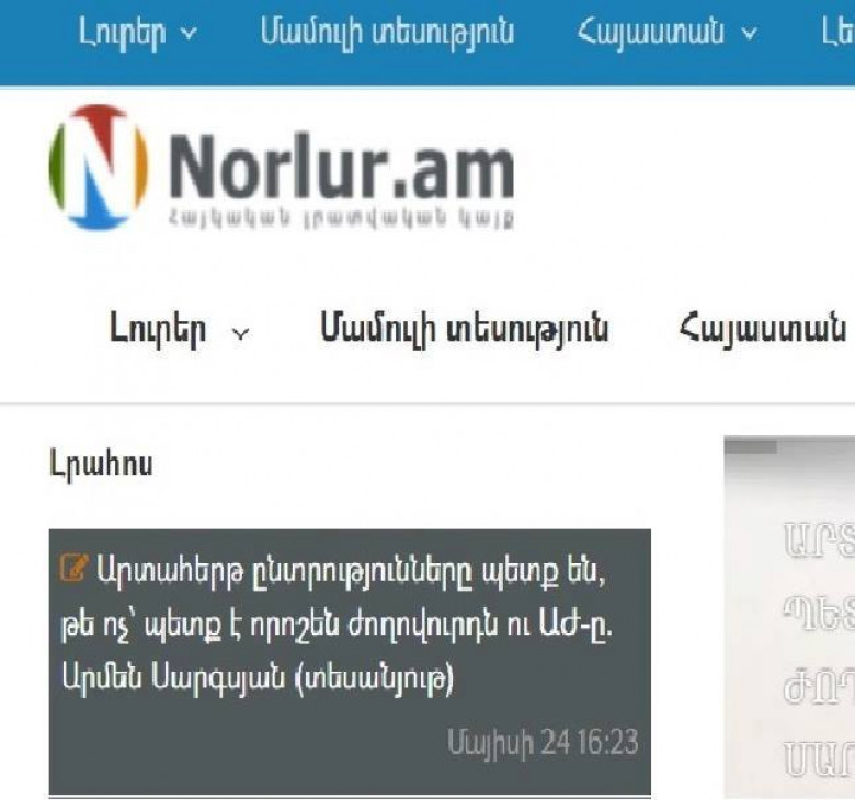 Ուստի ժողովուրդը պետք է դեմքով ճանաչի իր թշնամիներին։ Իսկ դրանց թիվն արդեն կարելի է համարել համալրված ևս մեկ կայքով․ դա Norlur.am կայքն է։