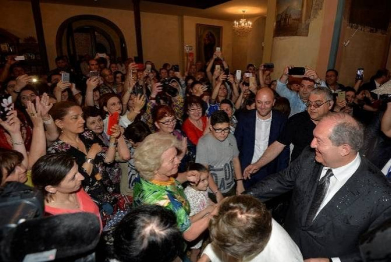 Հանրապետության Նախագահը խոսել է նաեւ Հայաստանում տեղի ունեցած վերջին փոփոխությունների մասին եւ նշել, որ դրանք քաղաքական ու տնտեսական հեռանկարային հնարավորություններ են ստեղծում մեր երկրի համար։ Դիմելով հայկական եկեղեցում հավաքվածներին` նա ասել է․ «Ձեզանից յուրաքանչյուրն այսօր պետք է հպարտ լինի, որովհետև Հայաստանը ցույց տվեց, որ այն եզակի երկրներից է, որ կարող է հսկայական փոփոխություն անել, որը շատերն անվանում են հեղափոխություն, թավշյա հեղափոխություն․․․ ես ասում եմ՝ հեղափոխություն հայկական ձևով, առանց մի կաթիլ արյան։ Հիմա եկել է ժամանակը, որ մենք կառուցենք այն հայրենիքը, որին մենք արժանի ենք»: