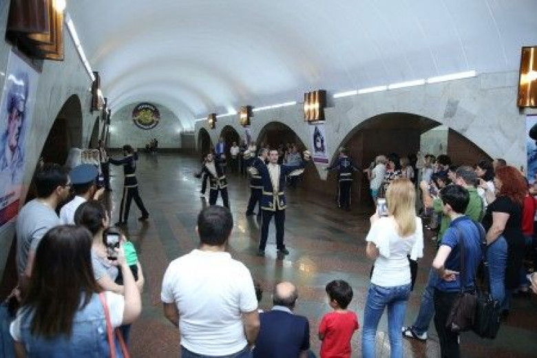 Տոնական շարժակազմի առաջին երթի մեկնարկը տրվել է մետրոպոլիտենի «Գարեգին Նժդեհ» կայարանից՝ ազգային երգ ու պարի ներքո, «Կարին» համույթի մասնակցությամբ: