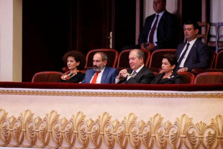 ՀասարակությունՎարչապետ Նիկոլ Փաշինյանը տիկին Աննա Հակոբյանի, ՀՀ նախագահ Արմեն Սարգսյանի ու տիկին Նունե Սարգսյանի հետ ներկա է գտնվել Արամ Խաչատրյանի 14-րդ միջազգային մրցույթի բացման արարողությանը: