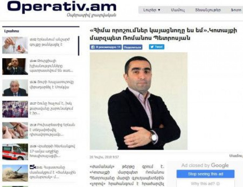 Կոտայքի նոր մարզպետը արդեն հասցրել է աչքի ընկնել բոլոր մյուս մարզպետների շարքում, սակայն ցավոք աչքի է ընկել ամենևին ոչ լավ առումով: Ըստ լուրերի աղանդավորական կազմակերպության անդամ Ռոմանոս Պետրոսյանը մարզի գյուղապետերի հետ հարաբերություններում շանտաժն ու ահաբեկումն է դարձրել իր հիմնական մեթոդը: