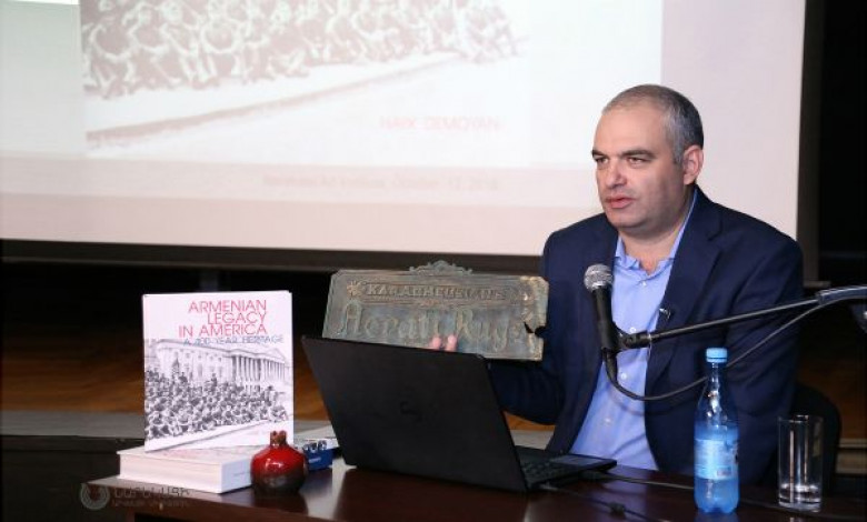 Հասարակություն«Նարեկացի» արվեստի միությունում տեղի ունեցավ պատմաբան, հրապարակախոս, ՀՀ ԳԱԱ Հայոց ցեղասպանության թանգարան-ինստիտուտի նախկին տնօրեն, պատմական գիտությունների դոկտոր Հայկ Դեմոյանի «Հայկական հետքն Ամերիկայում. 400-ամյա ժառանգություն» գրքի առաջին պատվավոր շնորհանդեսը Հայաստանում: