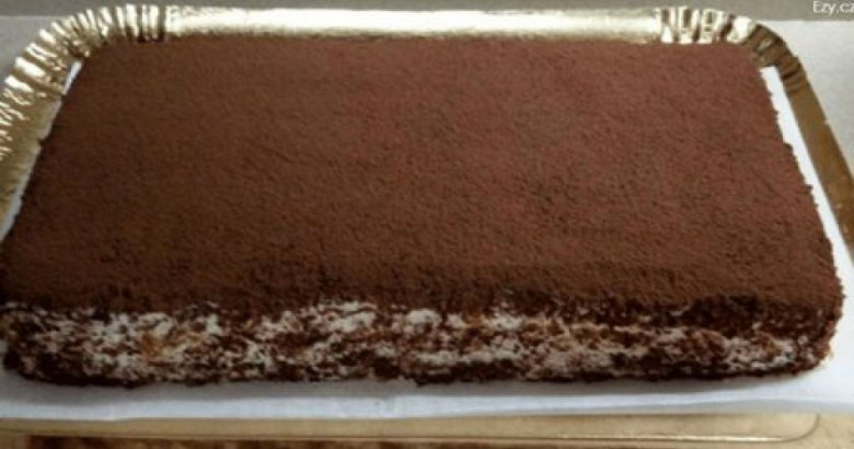10. Ներքևի շերտը դնում ենք գեղեցիկ ամանի մեջ, քսում ենք վրան պատրաստի կրեմի 2/3 մասը։ Վրայից դնում ենք երկրորդ շերտը և մնացած կրեմը քսում ենք վրան և կողքերը։