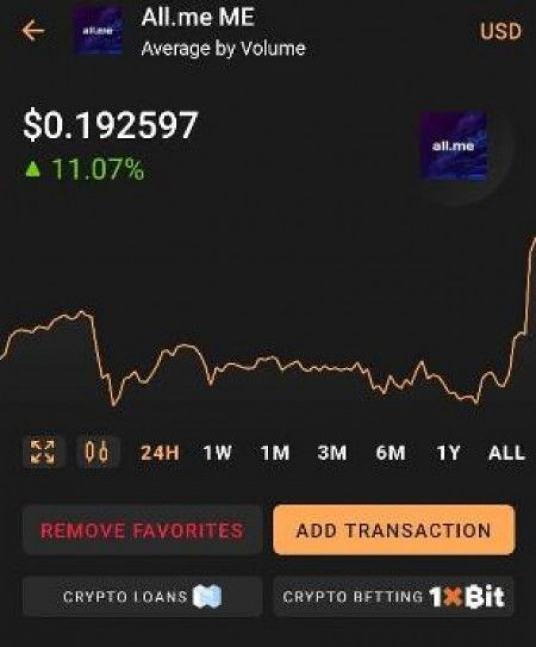 ՏնտեսությունALL.ME (ME) թոքենի`all.me թվային հարթակի ներքին արժույթի արժեքը 4 ամսում աճել է 1375%: