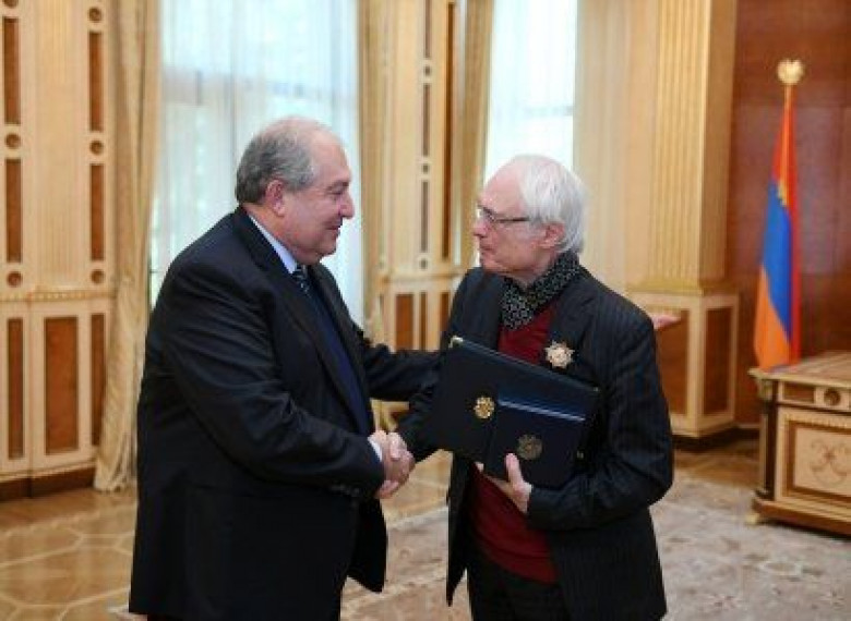Նախագահական նստավայրում Արմեն Սարգսյանն այսօր պետական բարձր պարգեւը հանձնել է մեծանուն կոմպոզիտորին: