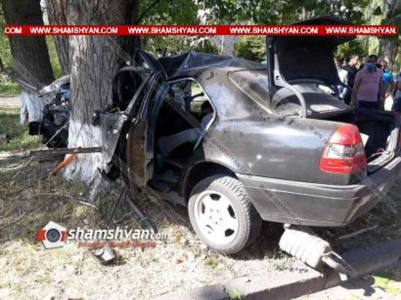 Կասկադյորական ավտովթար Կոտայքի մարզում. Mercedes-ը մխրճվել է ծառերի մեջ
