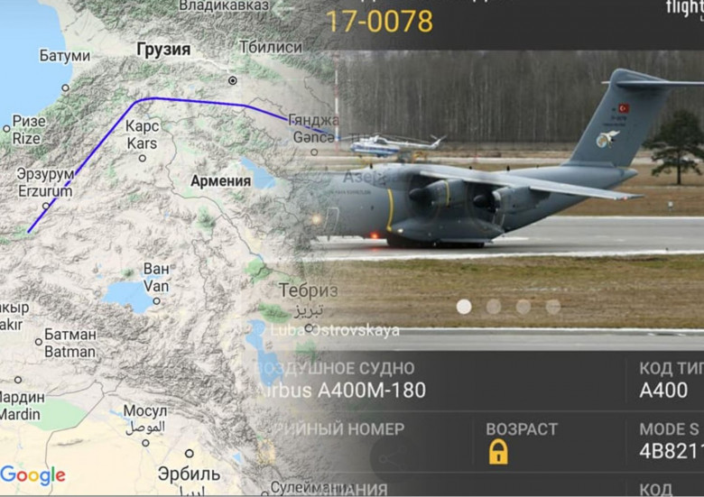 ԲլոգԵրեկ Թուրքիայի և Ադրբեջանի ռազմաօդային ուժերի ռազմատրանսպորտային ավիացիայի կողմից դեպի Ադրբեջան առնվազն 6 թռիչք է իրականացվել, որից 4 թռիչք իրականացվել է թուրքական Airbus A400M-180, 2-ը` ադրբեջանական IL-76TD տրանսպորտային ինքնաթիռներով։