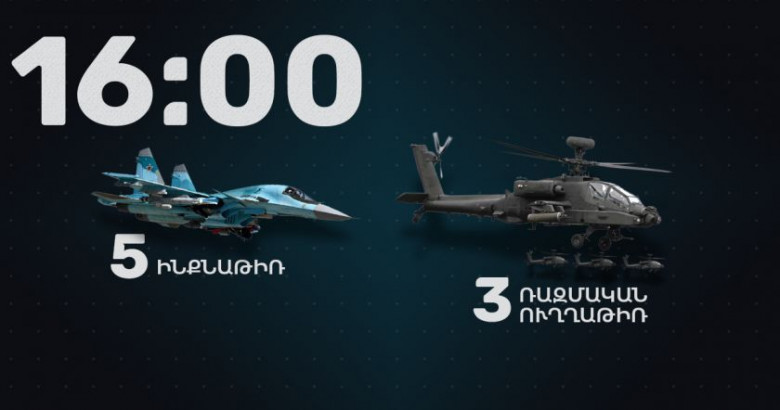 Ժամը 16:00-ի սահմաններում խոցվել է հակառակորդի հինգ միավոր ինքնաթիռ և երեք միավոր ուղղաթիռ
