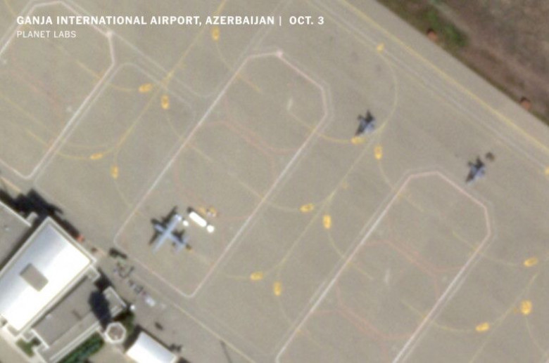 ՄիջազգայինNew York Times-ի լրագրող-վերլուծաբան Քրիստիան Տրիբերտը արբանյակային լոսւանկարներ է հրապարակել, որոնք ստացվել են հոկտեմբերի 3-ին Planetlabs խոշորագույն արբանյակային ցանցի կողմից: Ըստ Տրիբերտի՝ լուսանկարում պատկերված են Գանջայի օդանավակայանում տեղակայված առնվազն 2 F-16 կործանիչներ: